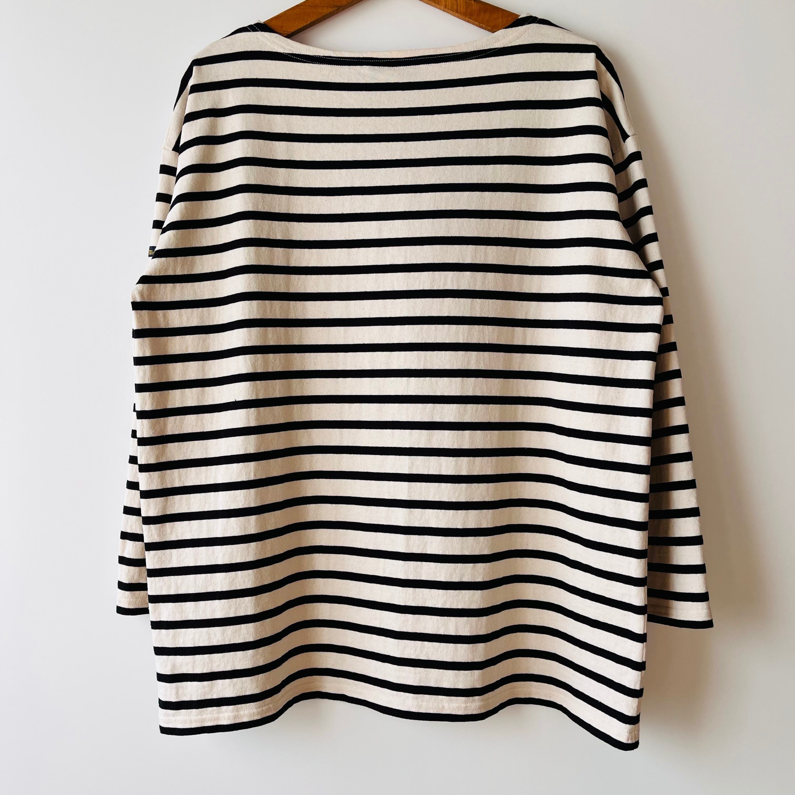 フランス発祥の老舗ブランド、ルミノアの定番かつ人気商品です。エクリュとブラックのシンプルなボーダー柄が特徴で、シンプルながらも洗練されたデザインが魅力的です。