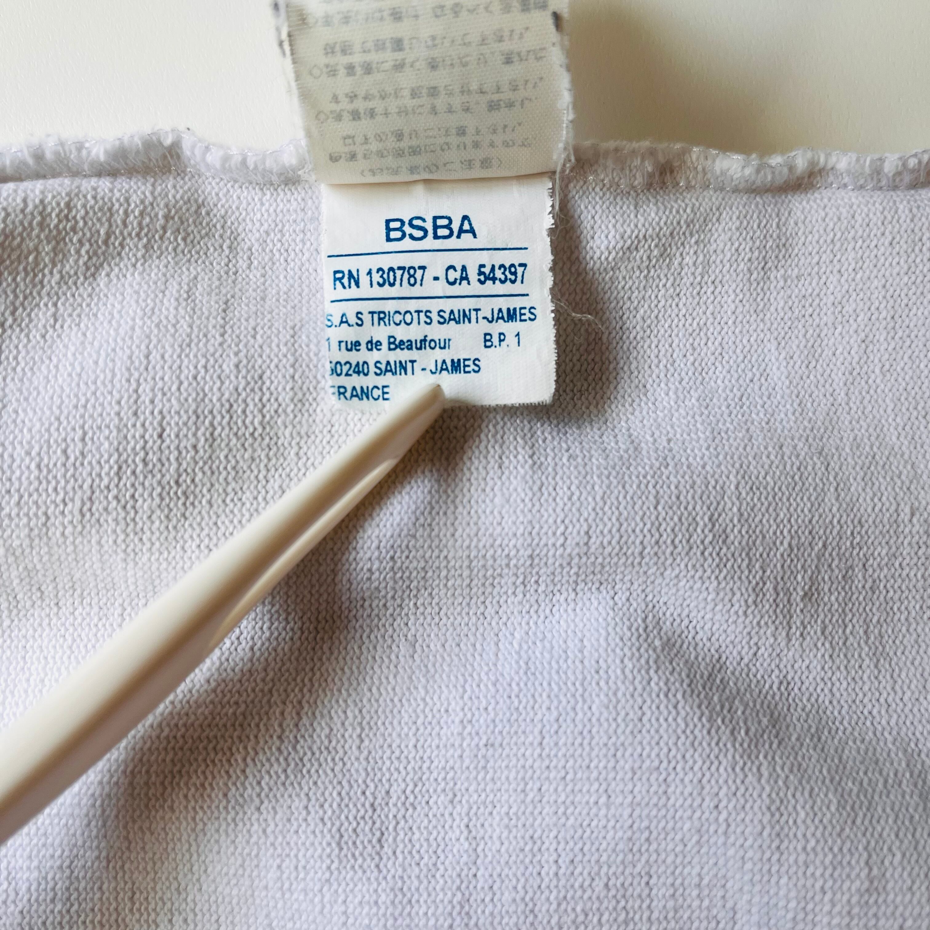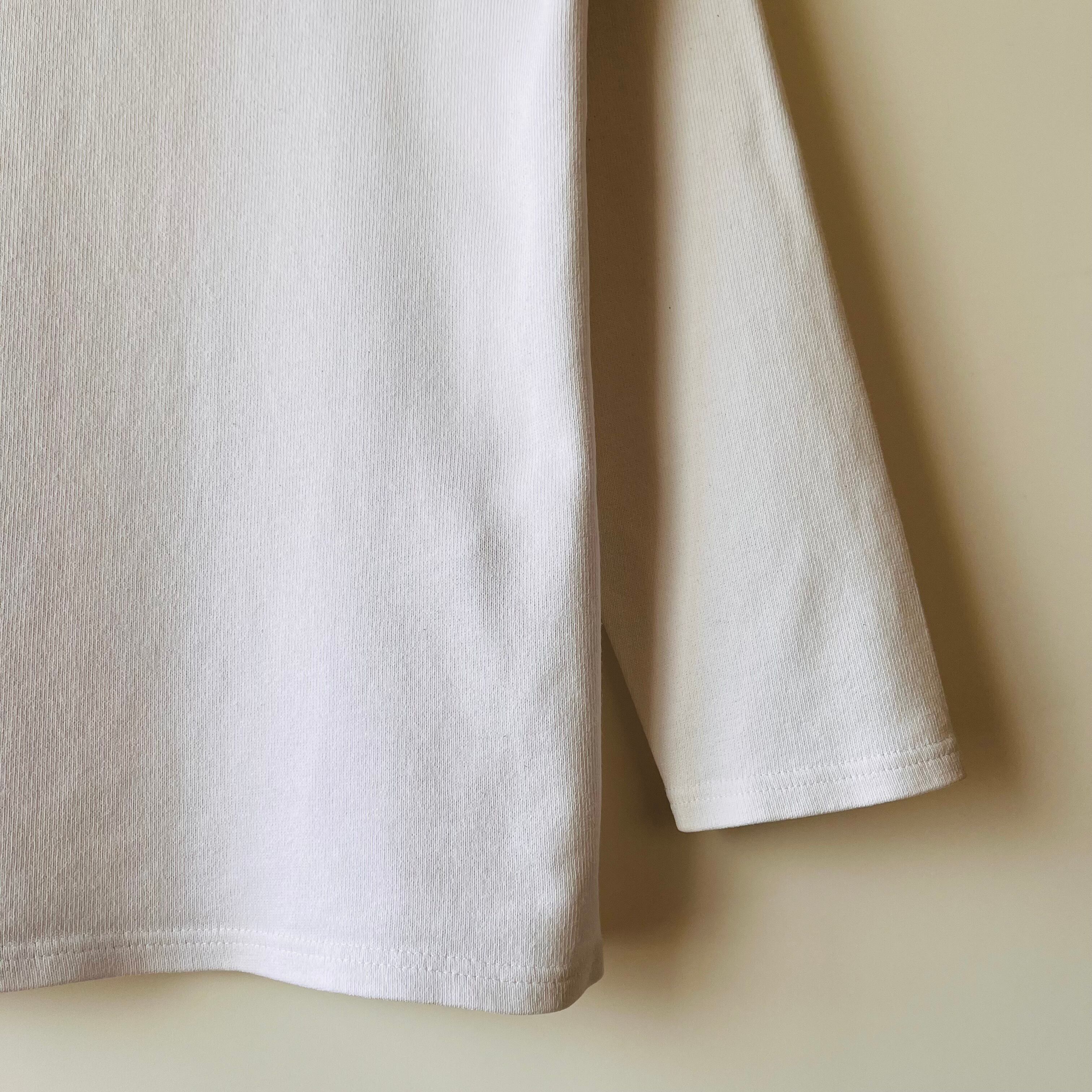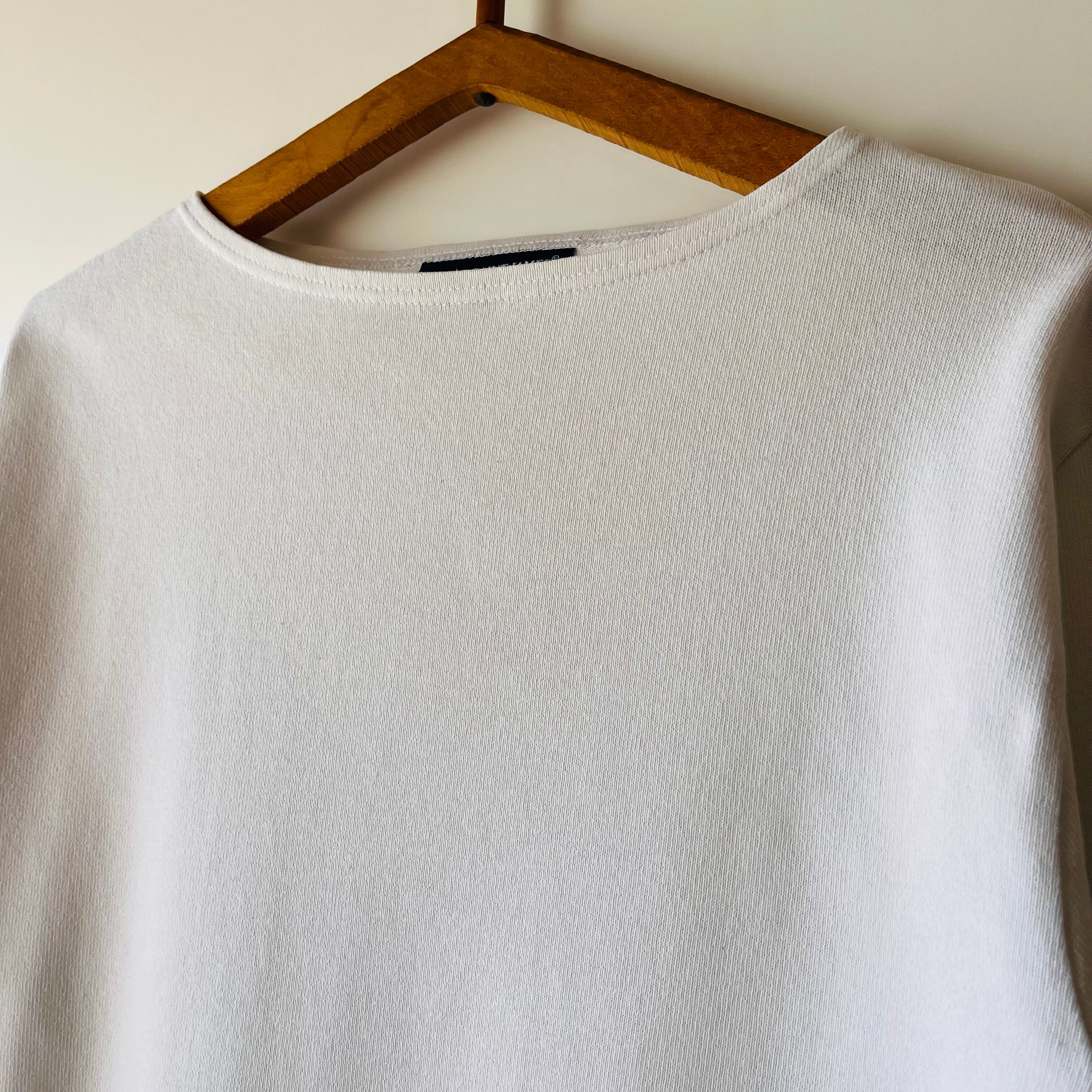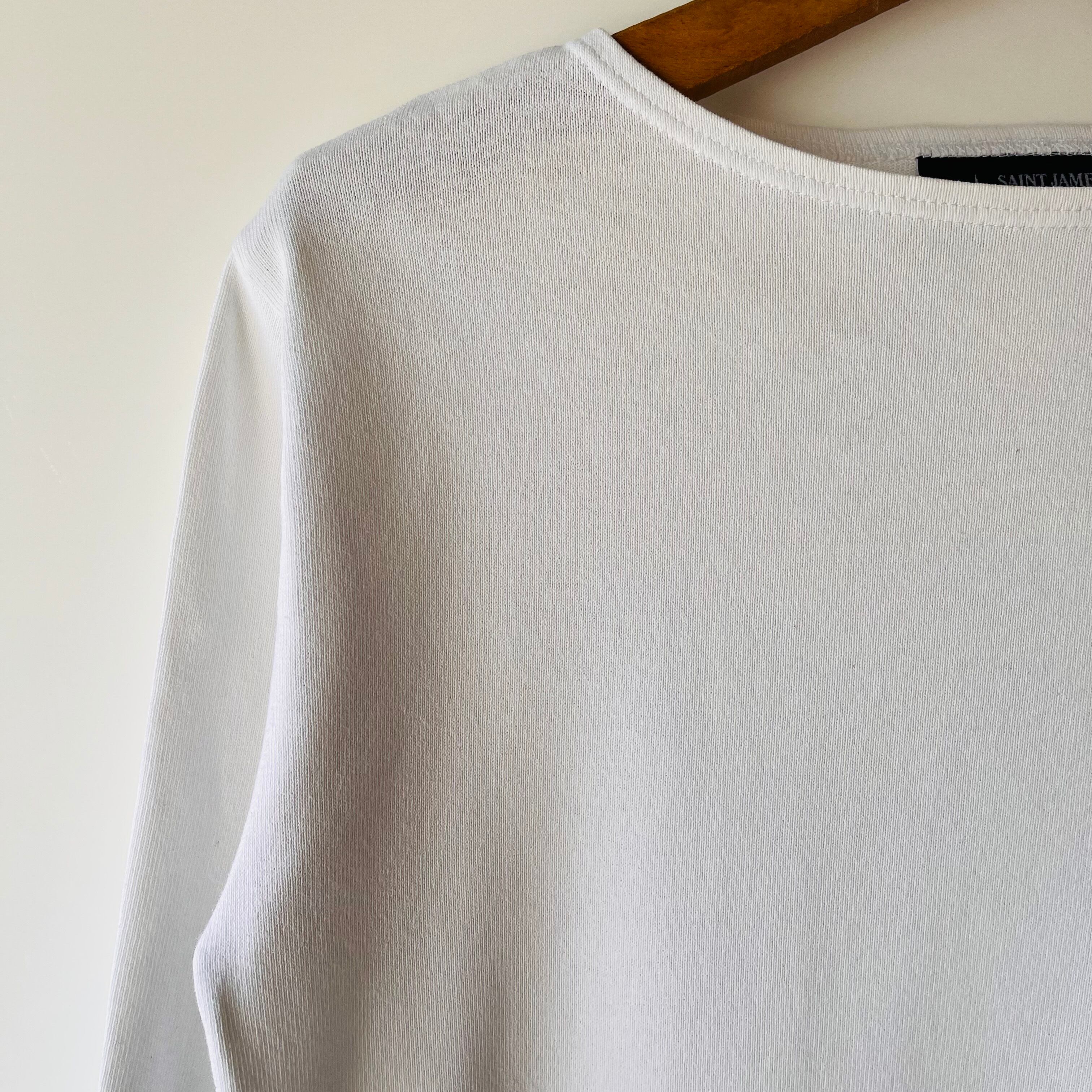フランス製セントジェームスのウエッソンです。無地のホワイトカラーで、シンプルながらもスタイリッシュなデザインが特徴の一着です。日常使いやカジュアルなシーンで活躍し、多彩なスタイリングに対応できます。