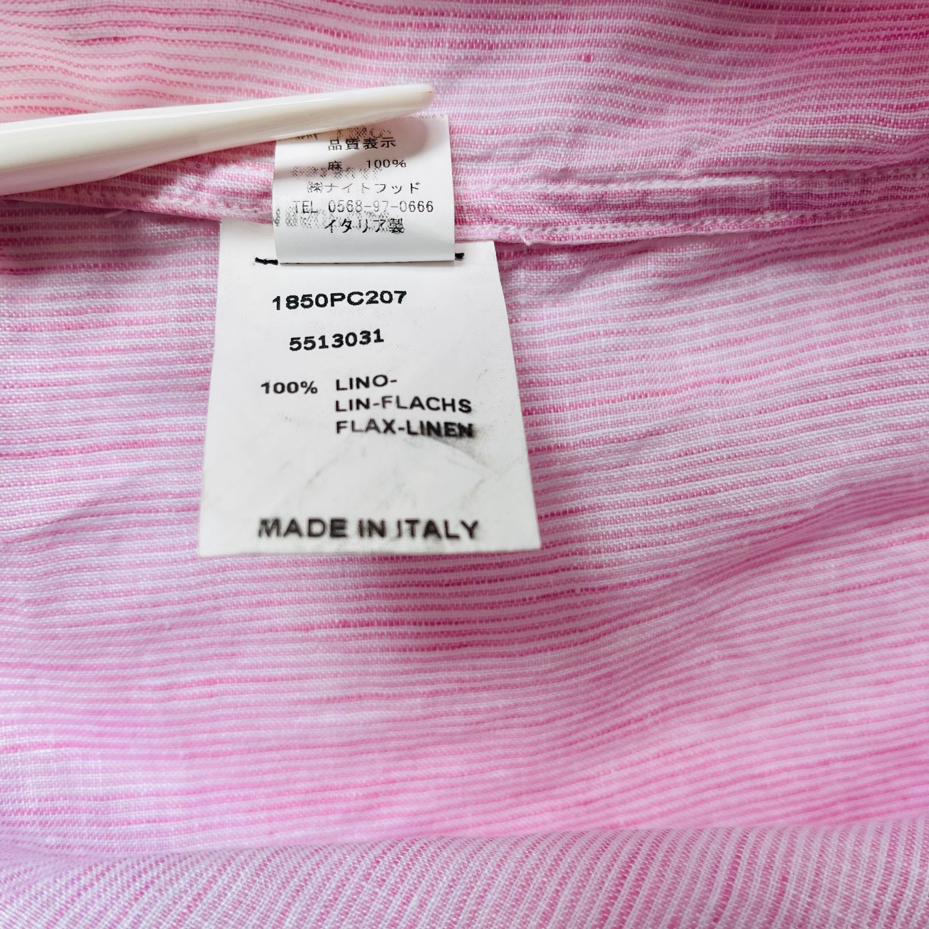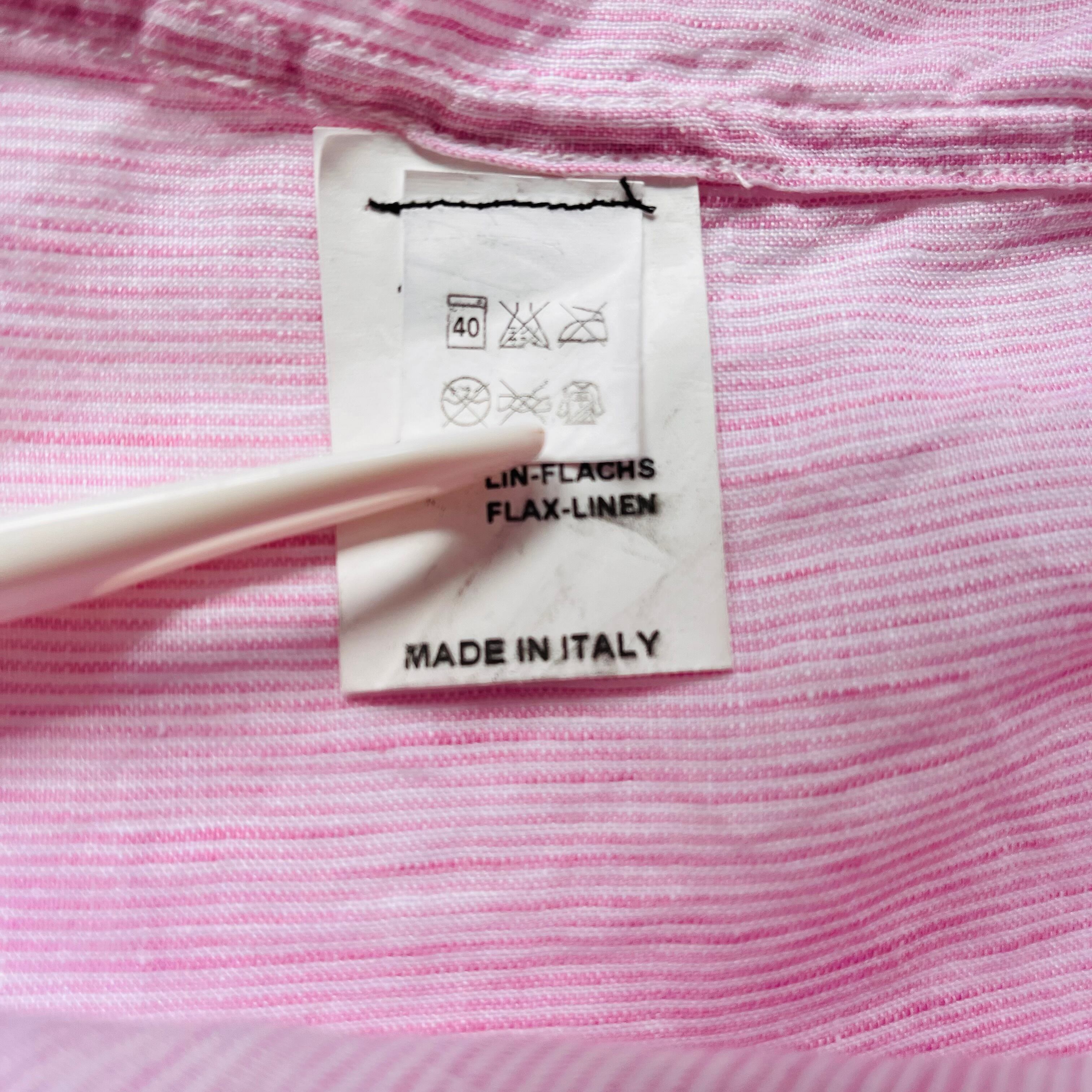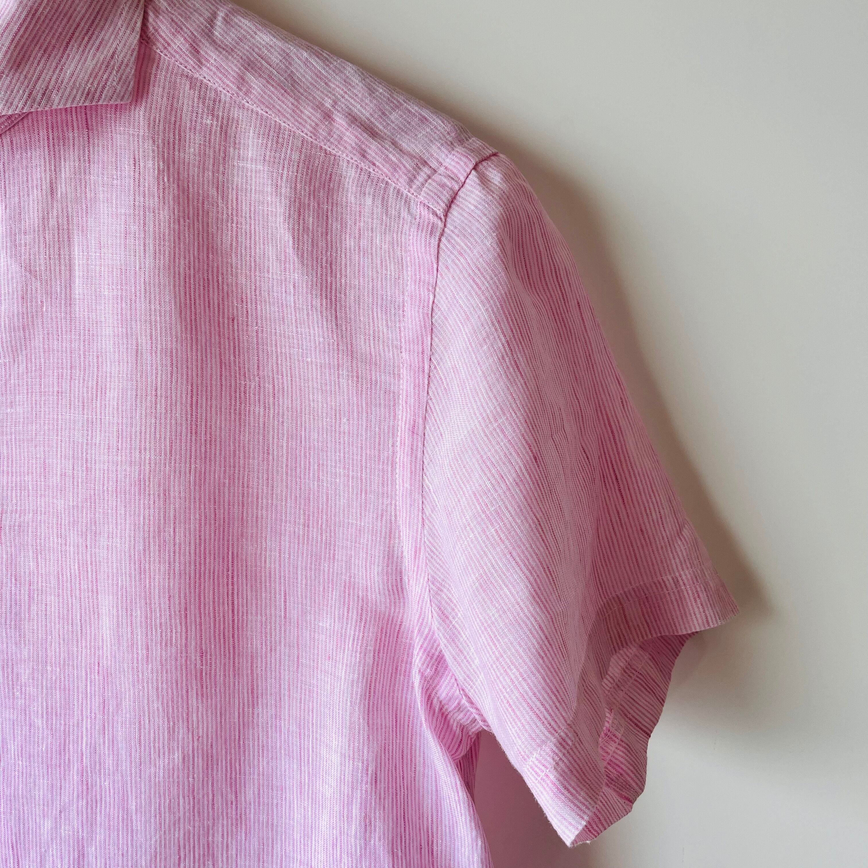 イタリアのブランドGUY ROVERのショートスリーブリネンプルオーバーシャツです。この鮮やかなピンクカラーは、夏のコーディネートにぴったりの一枚で、爽やかさを演出します。カジュアルなシーンからちょっとしたお出かけまで、多彩なスタイリングが楽しめるアイテムです。