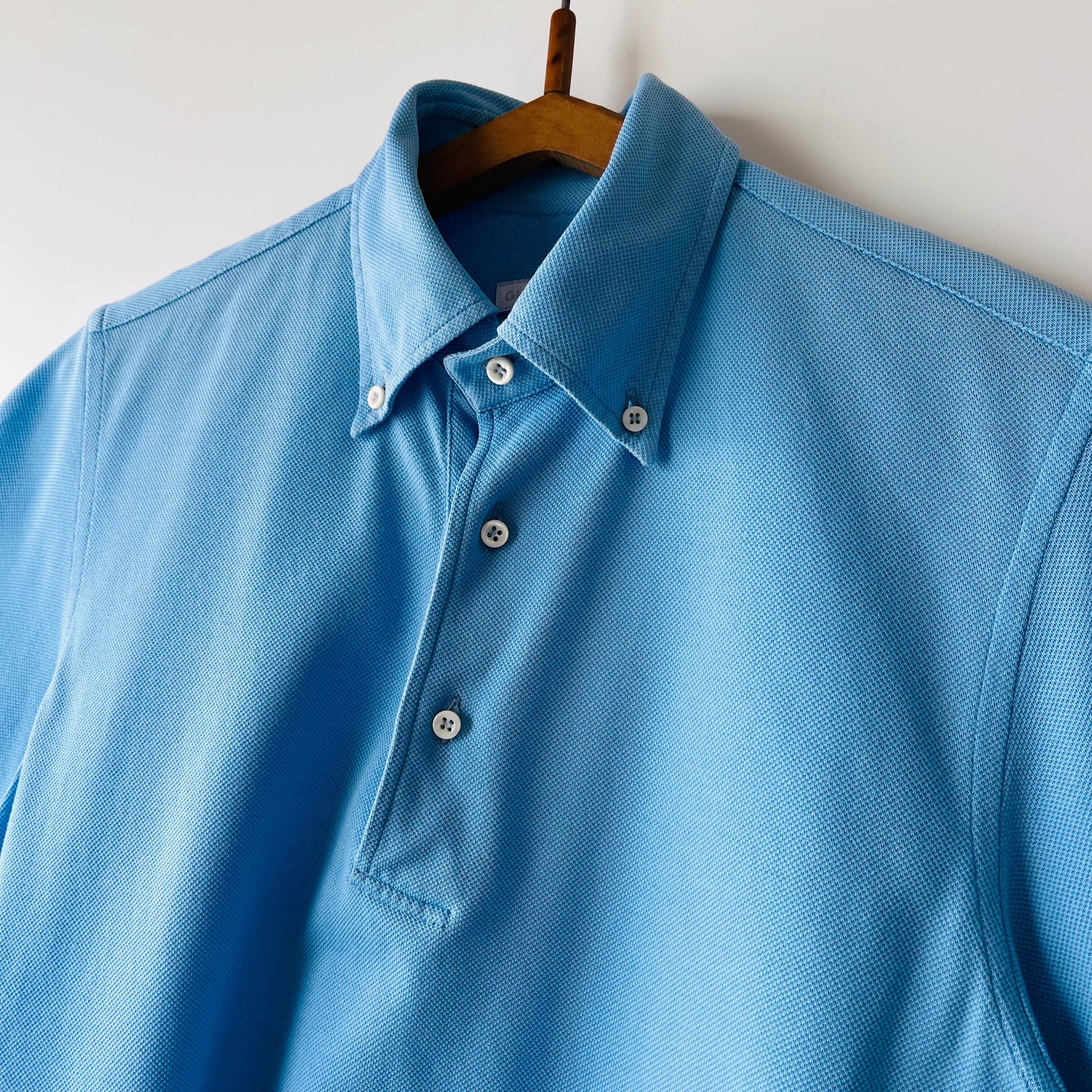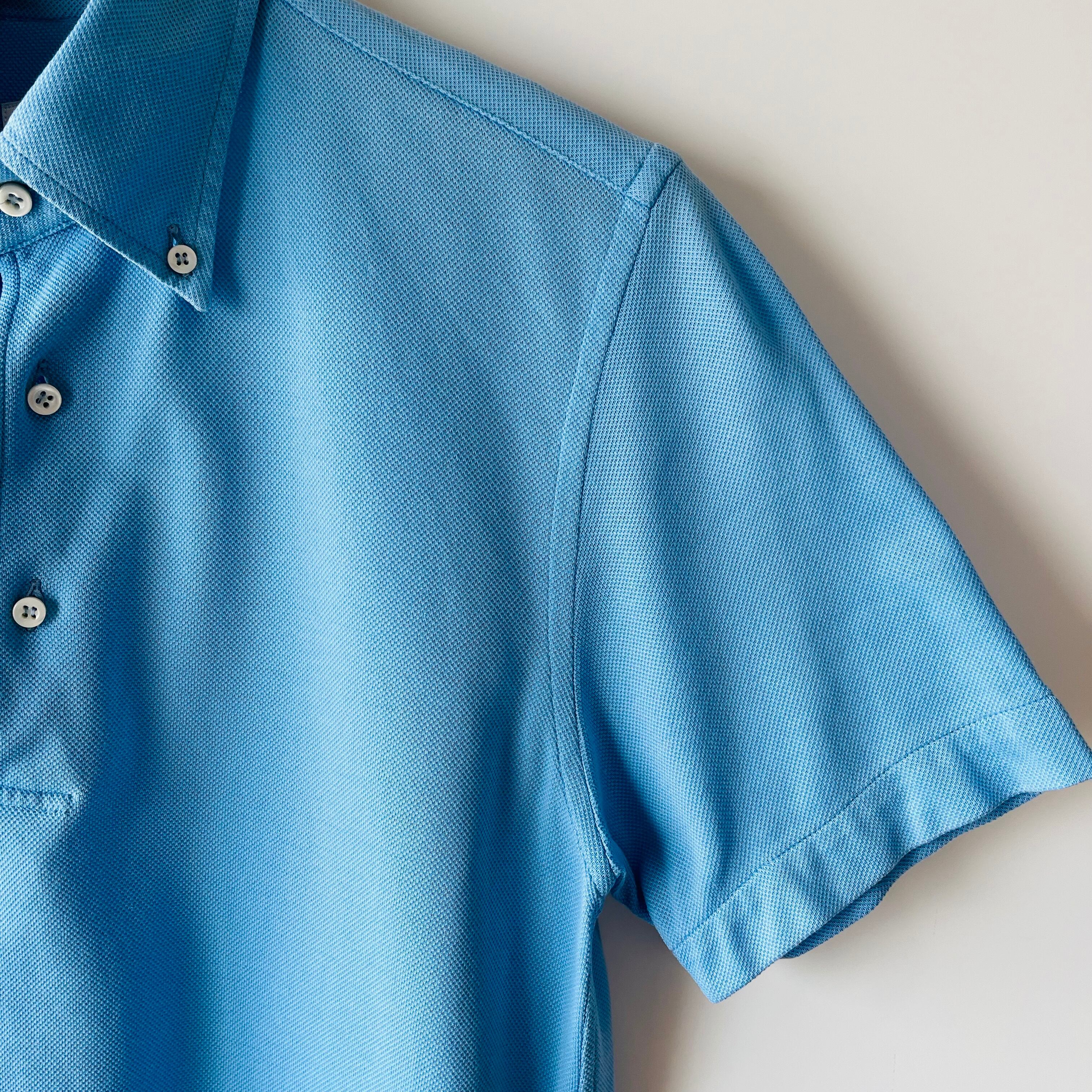 イタリアのブランドGUY ROVERのショートスリーブポロシャツです。淡いライトブルーの色合いが、爽やかな印象を与え、カジュアルなシーンからビジネスカジュアルまで幅広く使える一枚となっています。