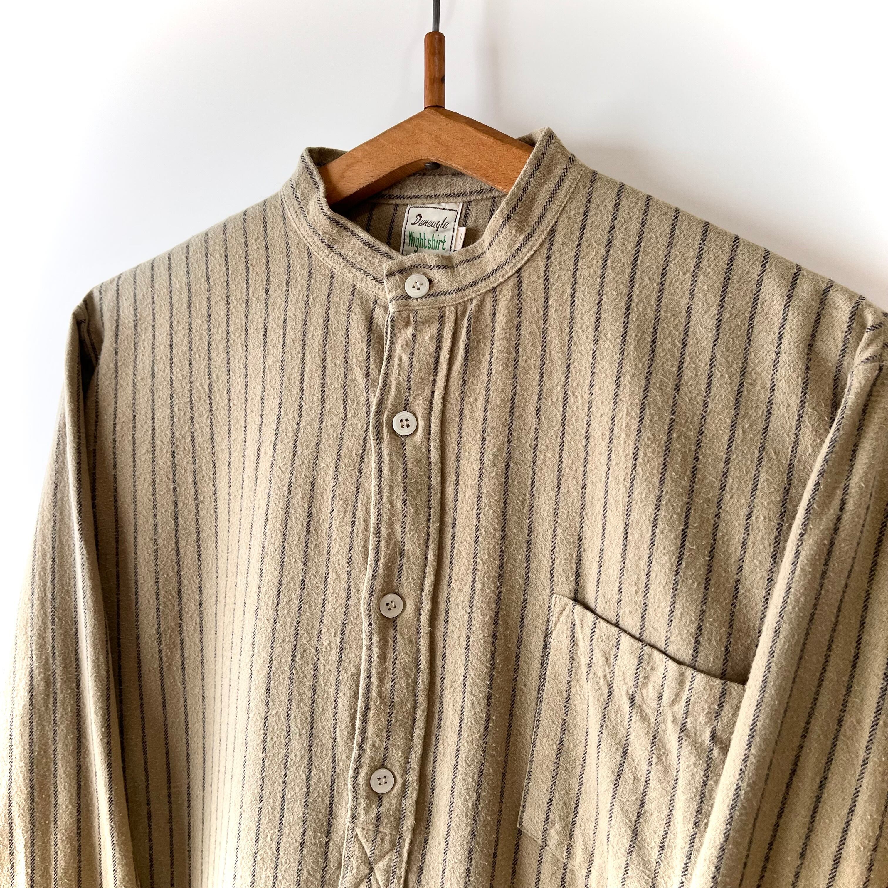 Duneagle cotton flannel grandpa shirts beige stripe sizeS