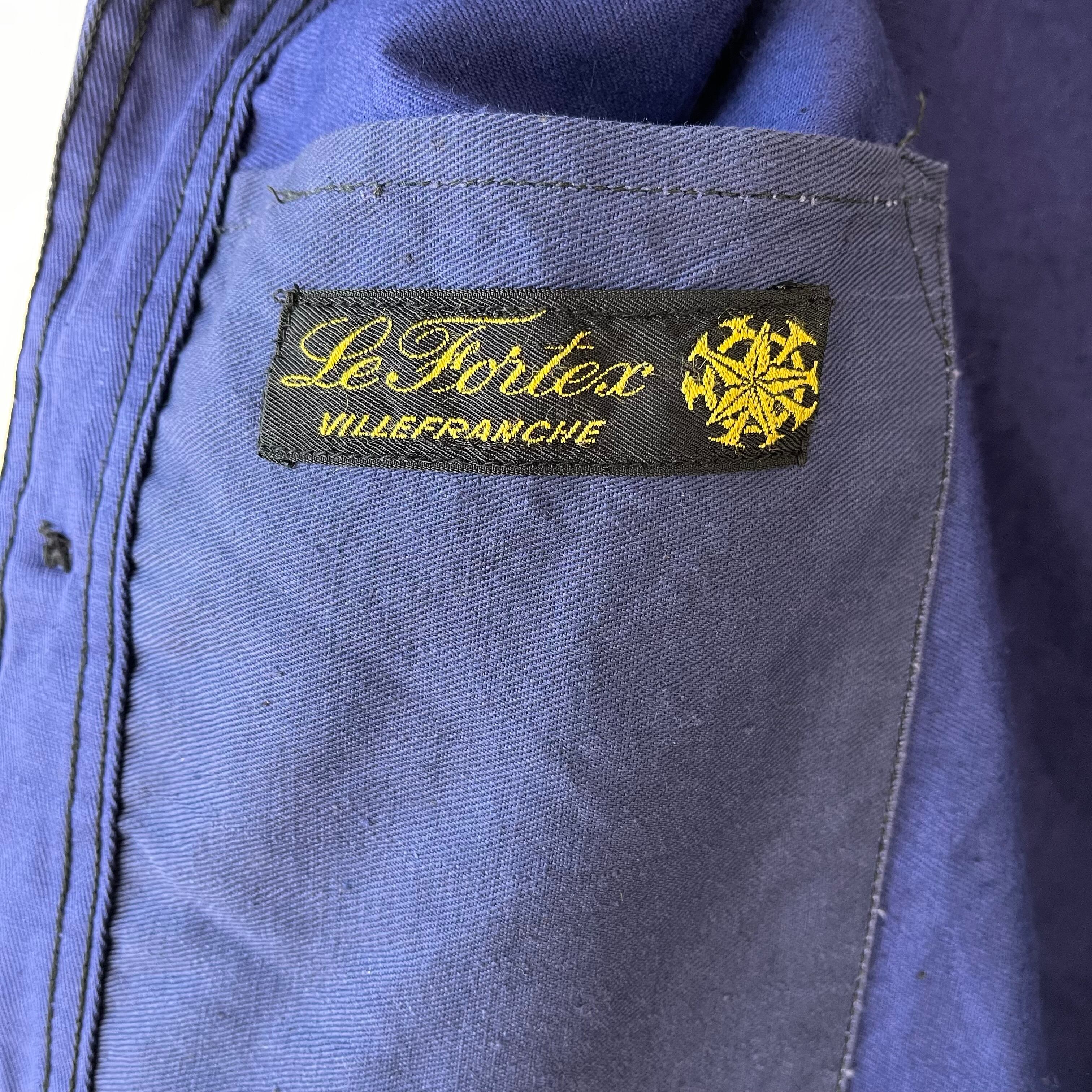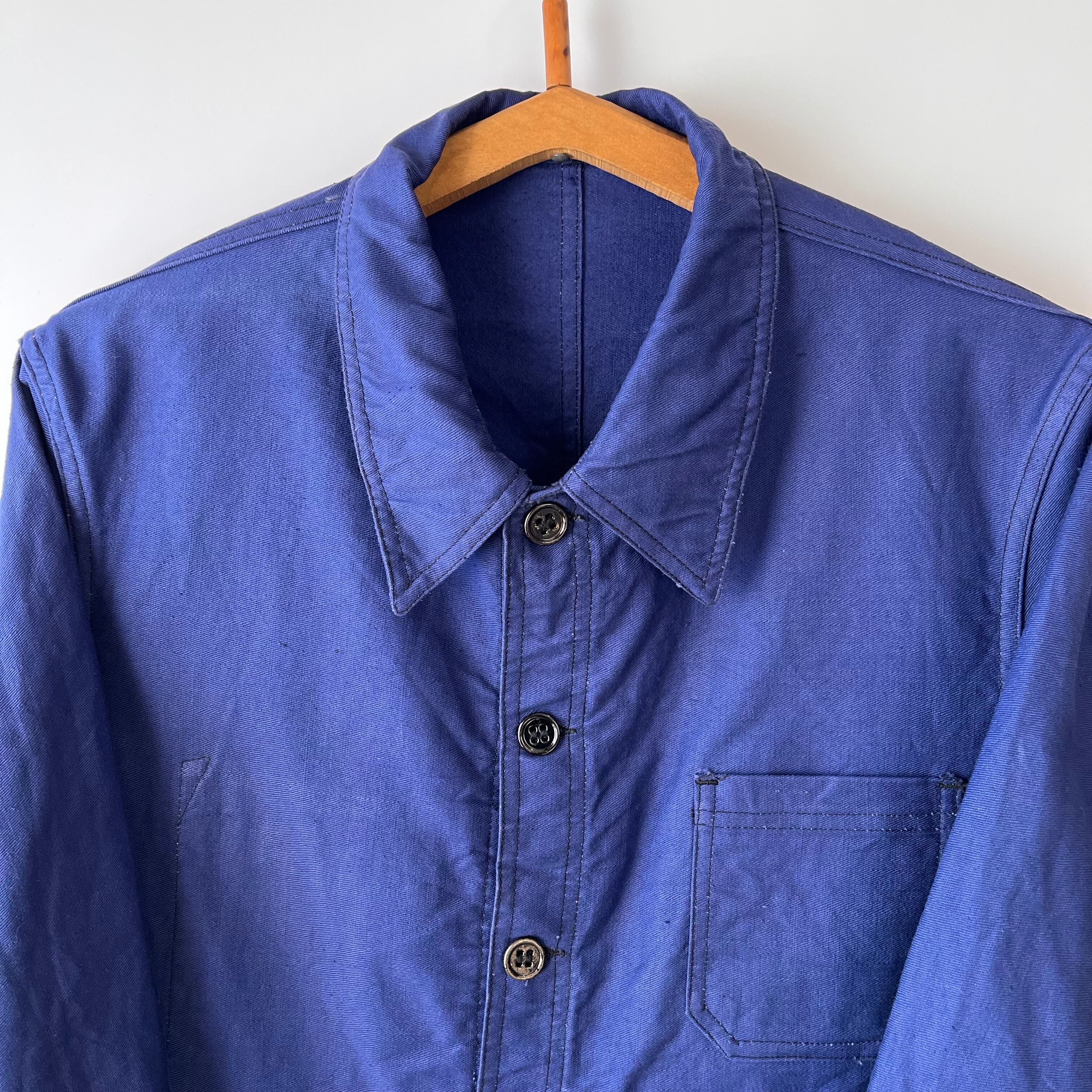 推定50年代、フランス製のブルーコットンツイルワークジャケットです。