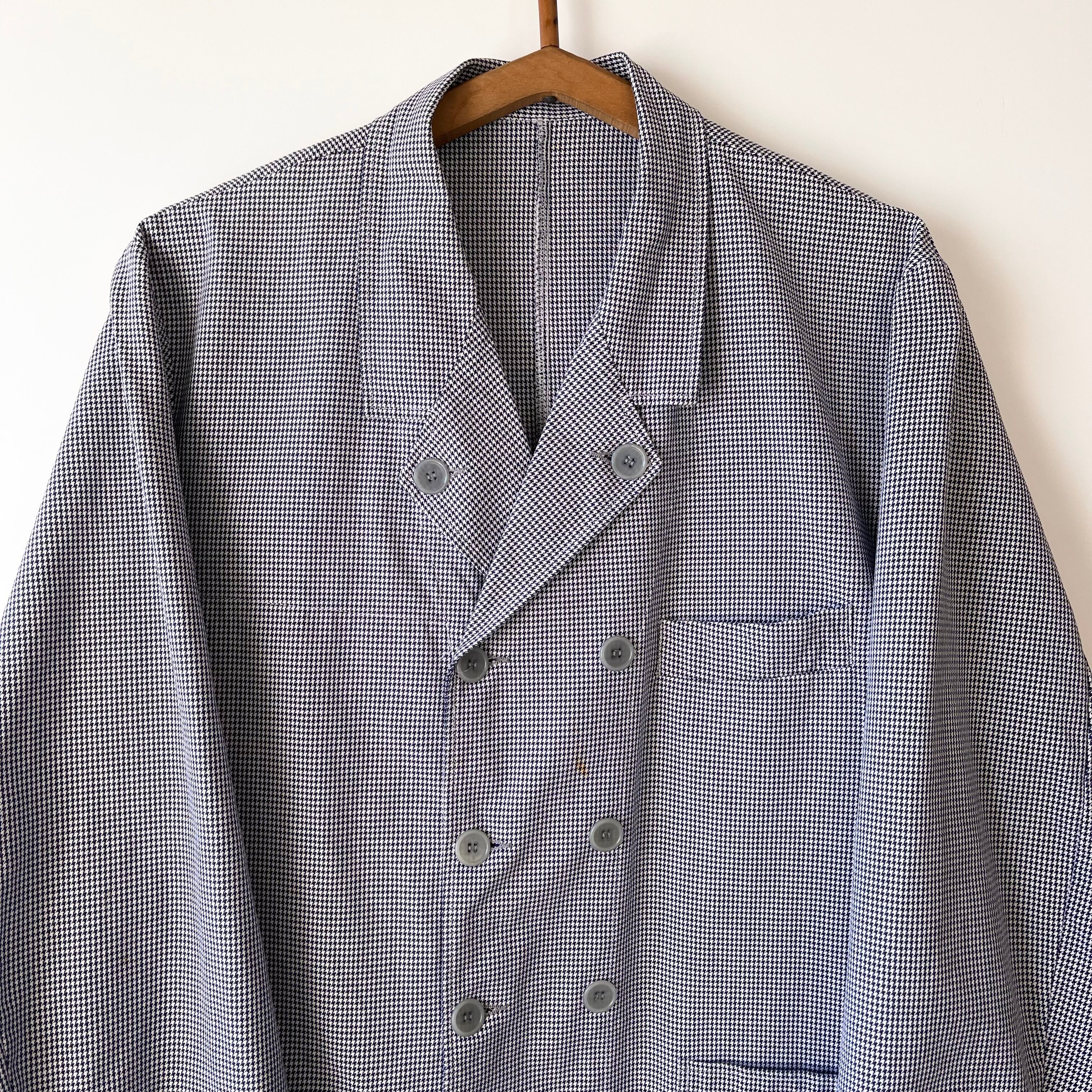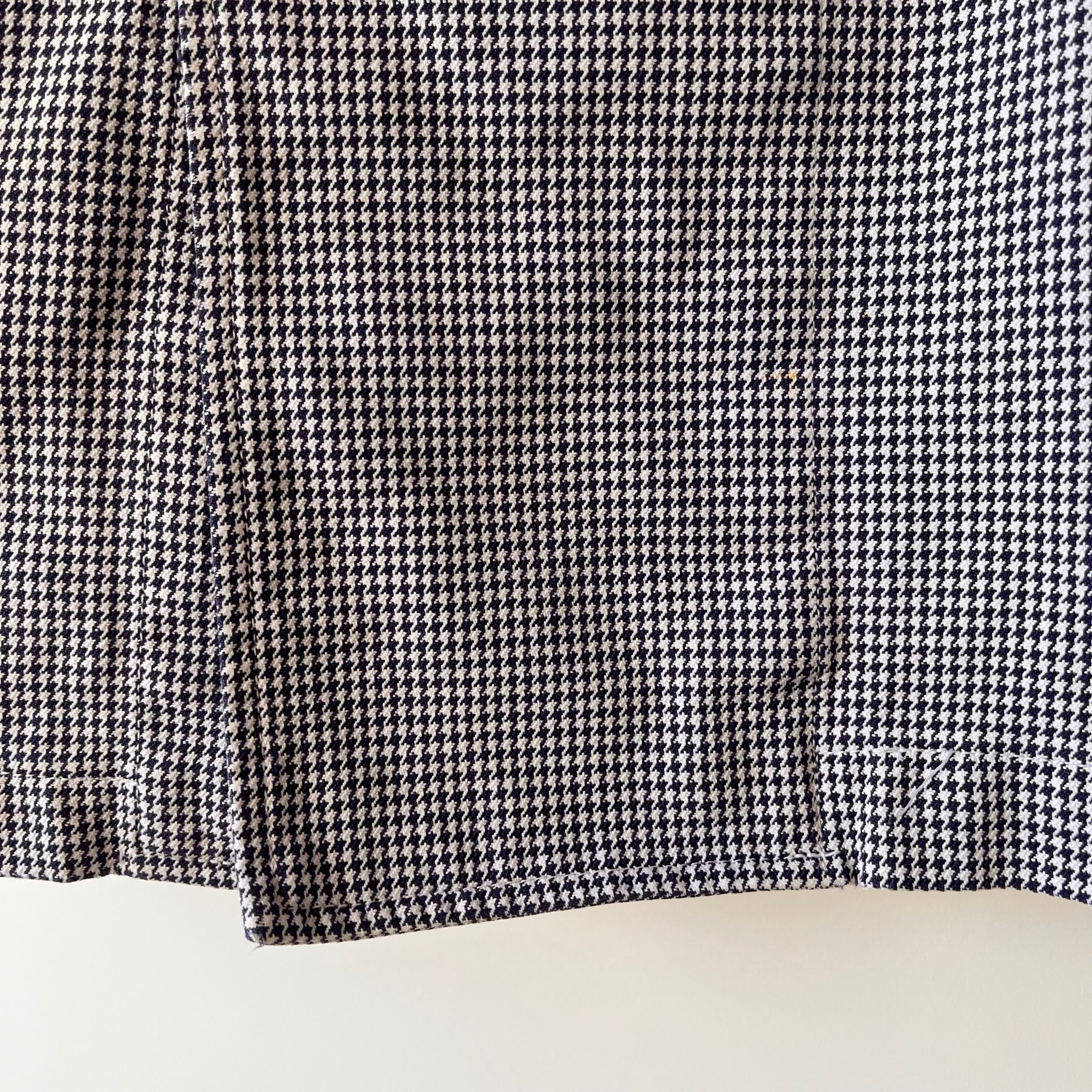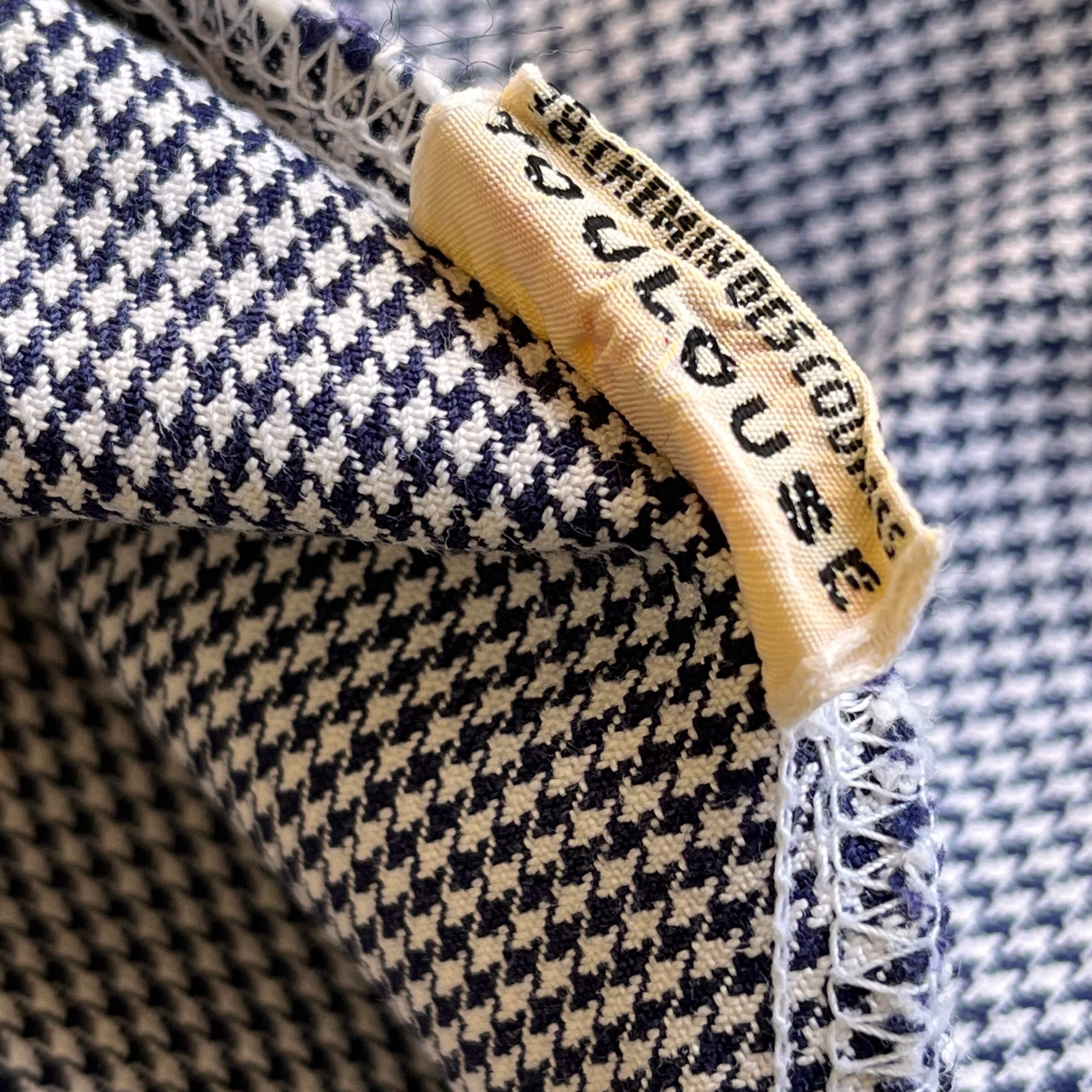 白地にネイビーの千鳥格子柄ですので、爽やかな印象で着用できると思います。