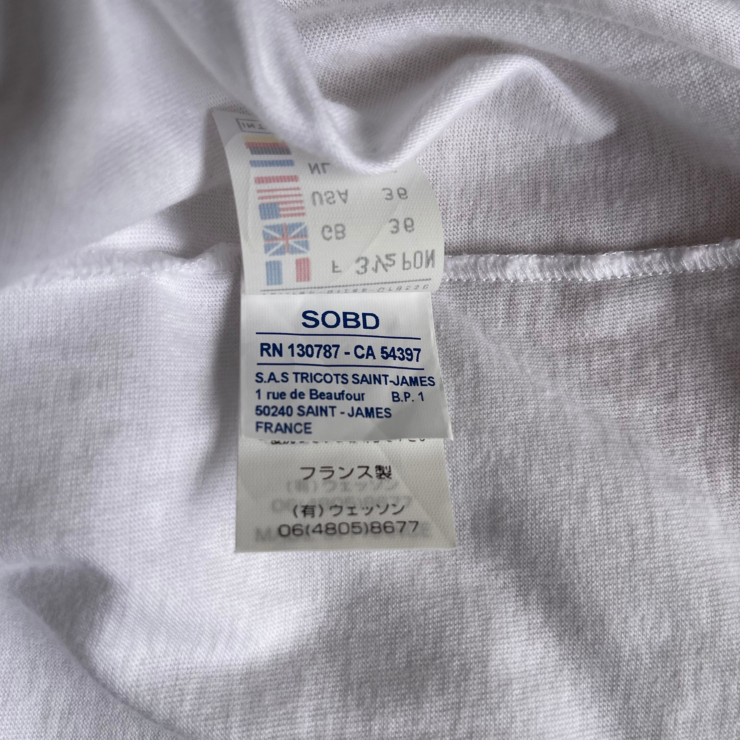 フランス発祥の老舗ブランドSAINT JAMESの代表的な商品です。無地のホワイトカラーで、シンプルながらも爽やかで洗練されたデザインが魅力的です。フランス北部の沿岸地域で誕生したブランドらしいマリンルックを楽しむことができる一枚です。