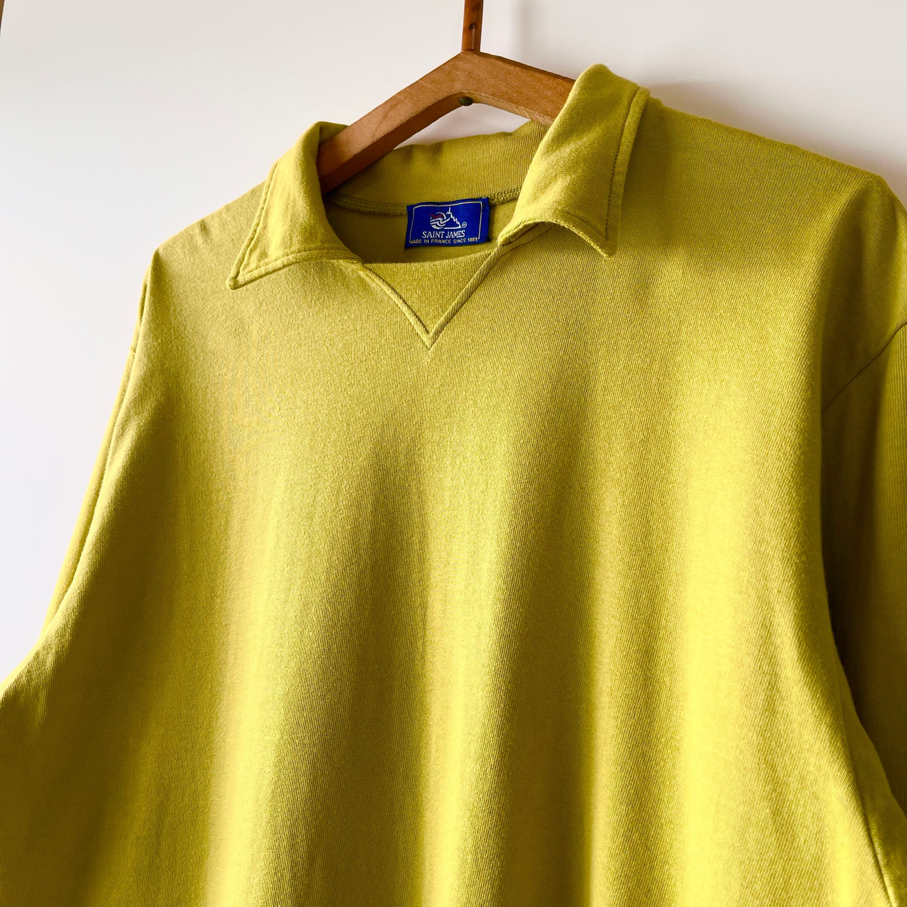 フランス発祥の老舗ブランドSAINT JAMESから珍しい襟付きスウェットタイプの商品です。鮮やかなライムグリーンカラーで、シンプルながらも洗練されたデザインが魅力的です。フランス北部の沿岸地域で誕生したブランドらしいマリンルックを楽しむことができるアイテムです。