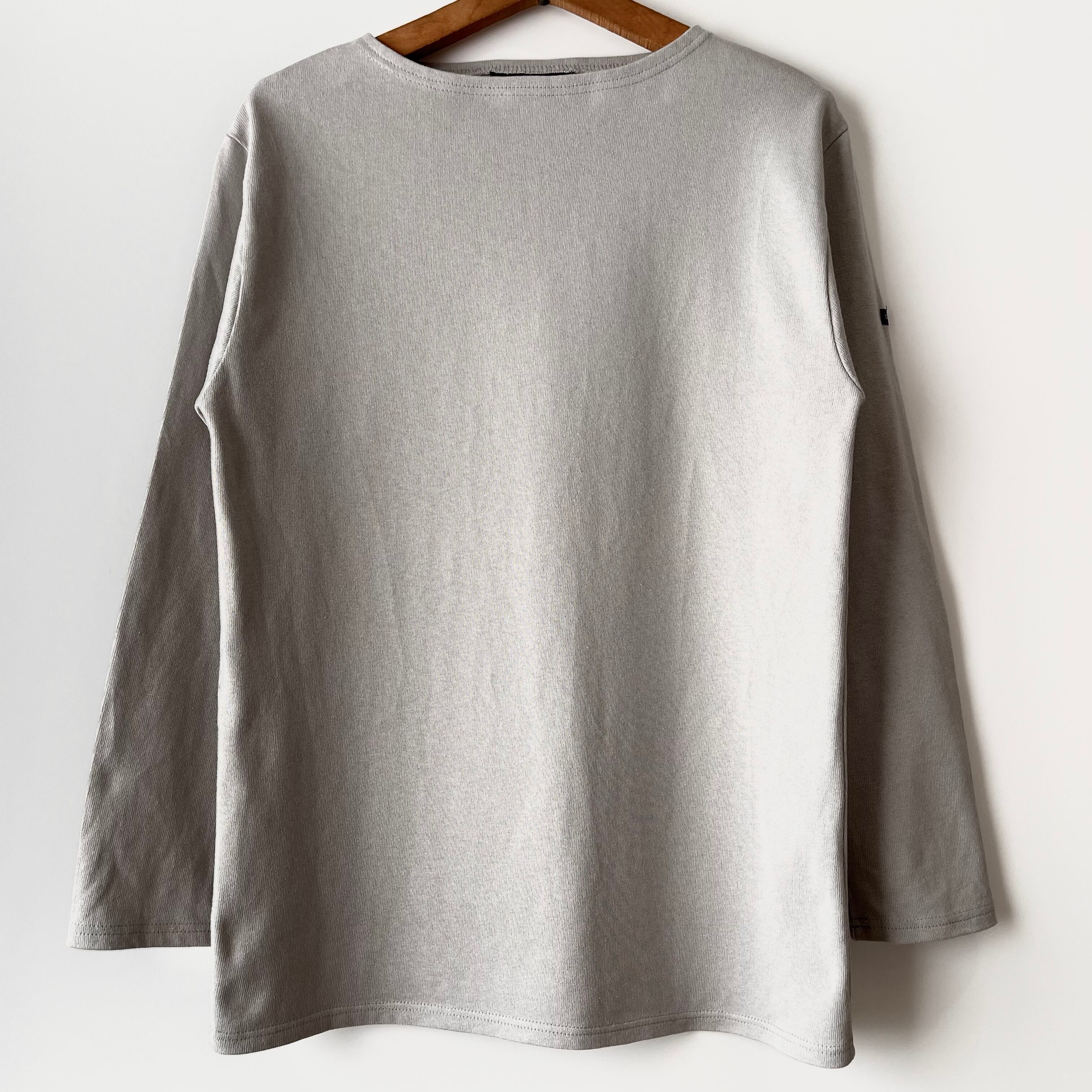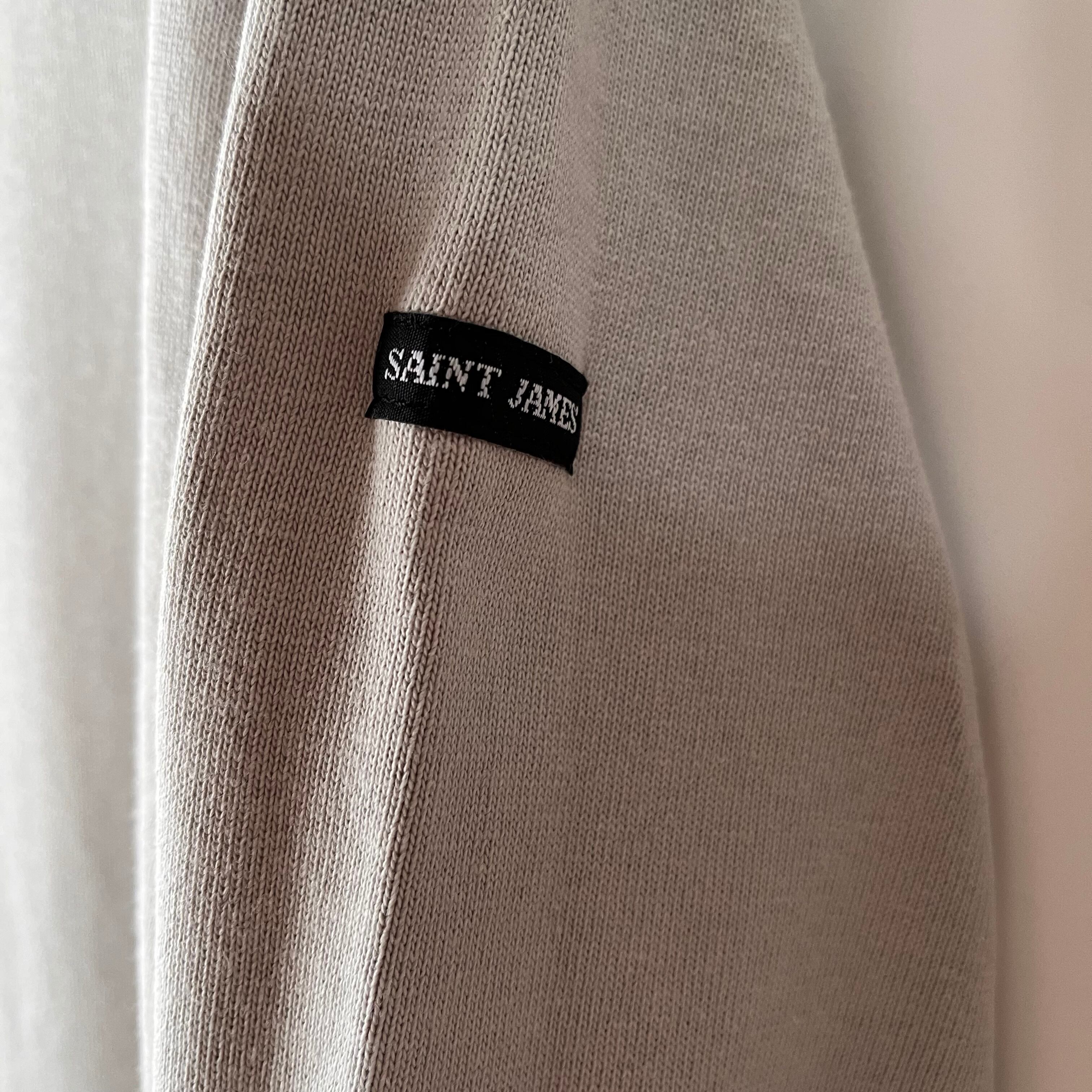 フランス発祥の老舗ブランドSAINT JAMESの代表的な商品です。グレーがかったベージュカラーが特徴で、シンプルながらも洗練されたデザインが魅力的です。フランス北部の沿岸地域で誕生したブランドらしいマリンルックを楽しむことができる一枚です。