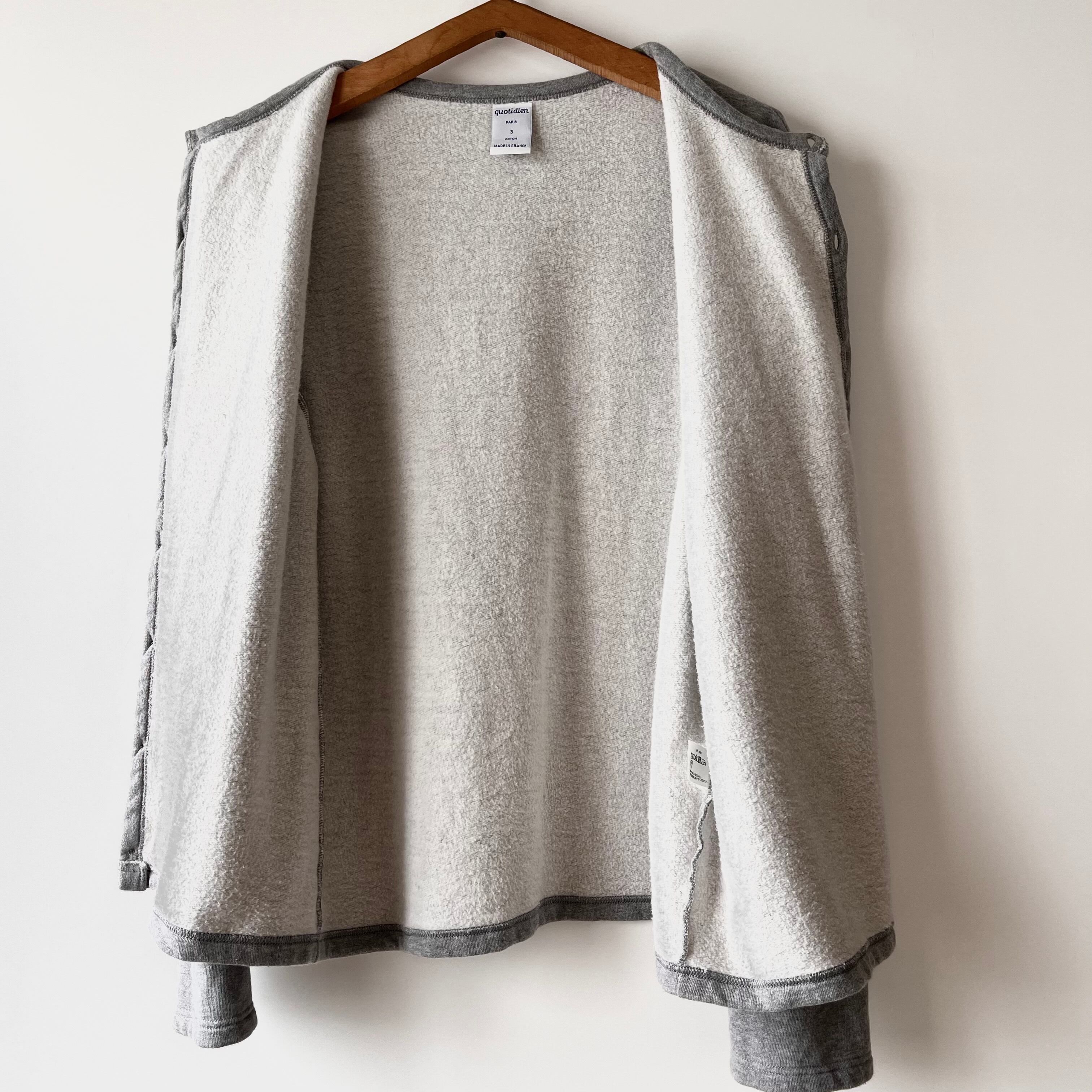 Quotidienは、シンプルながらも洗練されたデザインが魅力的なブランドです。グレーのスウエットカーディガンは、カジュアルなスタイルにぴったりのアイテムで、さまざまなコーディネートに合わせやすく、毎日の着回しに大変便利です。