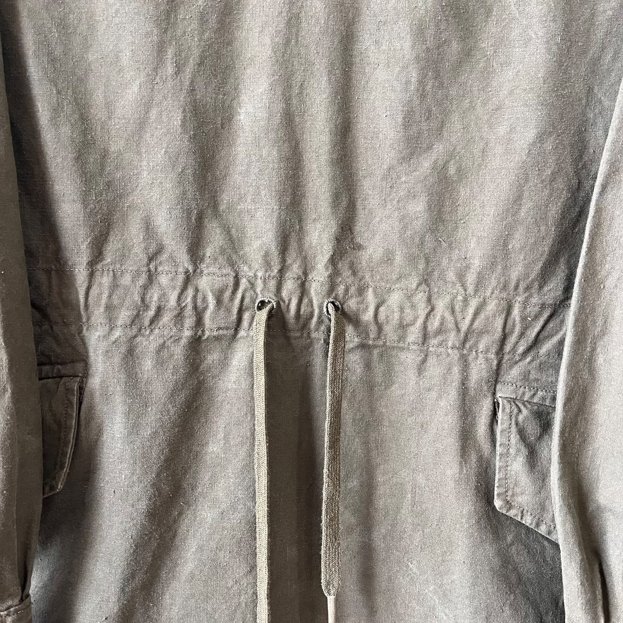 フレンチミリタリーの中でも希少性が高く、人気のアイテムです。しっかり打ち込まれた平織りの張りがあるコットン生地で、タフな質感で雰囲気良くフェードしており、素晴らしい経年変化をしています。